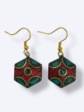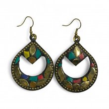 Indian earrings "Globe" with a black stone. Country of origin: India.