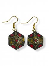 Indian earrings "Wheel" with a large black stone. Country of origin: India.