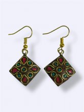 Indian earrings "Crown" with a green stone. Country of origin: India.