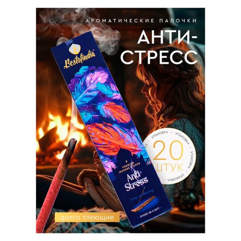 Благовония Антистресс Bestofindia с подставкой 20 шт.