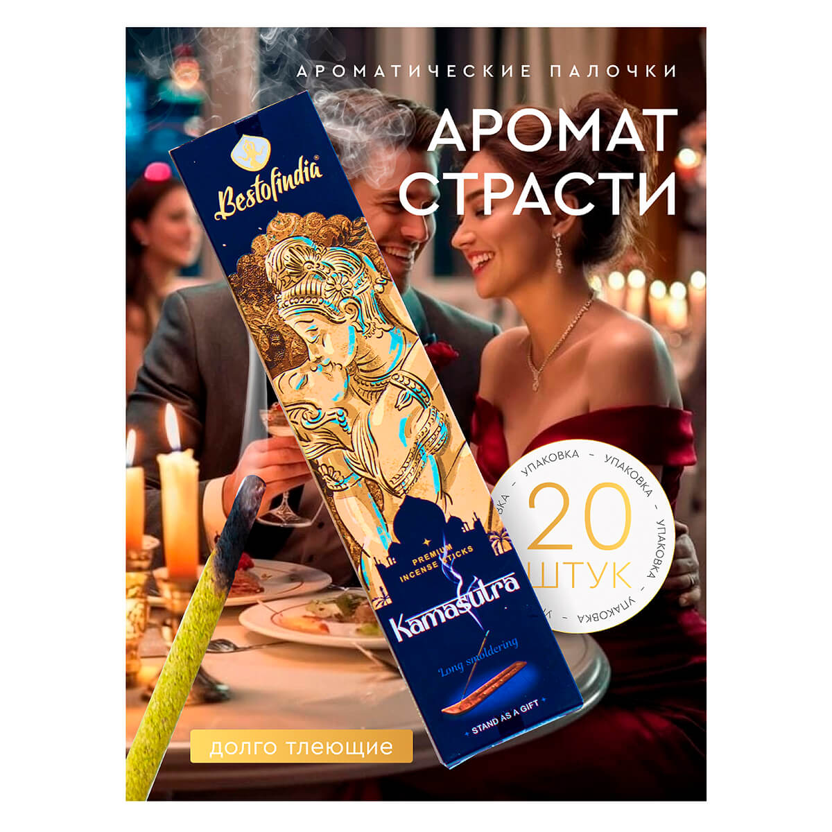 Откройте для себя искусство чувственного наслаждения с помощью набора благовоний «Камасутра» (Kamasutra) от индийского бренда Best of India. Этот комплект, включающий 20 ароматических палочек и изящную деревянную подставку, создан по мотивам древнего трактата о гармонии в любви и предлагает аромат, пробуждающий страсть и романтику.