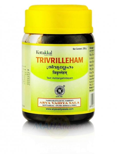 Триврил Лейхам является мягким слабительным, улучшающим пищеварение. Формула препарата была описана в канонических аюрведических текстах Аштанга-хридая-самхита.