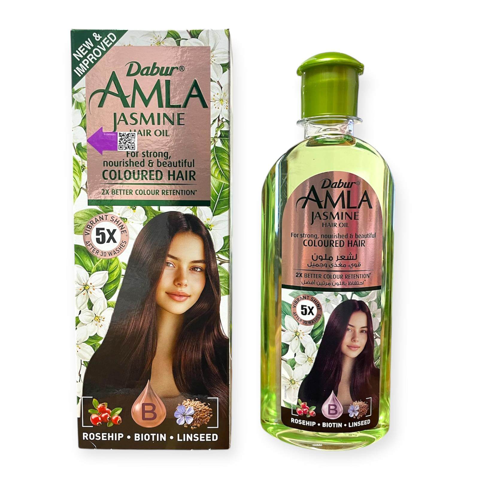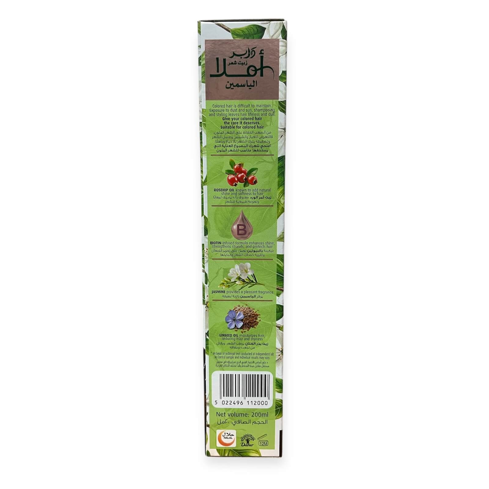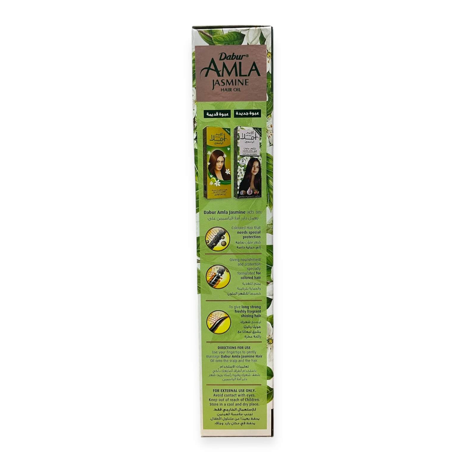 Масло Jasmine Coloured Hair для окрашенных и поврежденных волос от Dabur - это традиционное средство восточной косметологии из натуральных компонентов с жасмином, обогащеное биотином и маслами льна и шиповника. Бережно ухаживает за кожей головы. После применения ваши волосы будут приятно пахнуть на протяжении всего дня. Эффективная лечебная индийская формула возвращает волосам природный блеск и здоровье по всей длине. Косметическое масло для волос с добавками. Подходит для окрашенных, сухих и ломких волос. Активно увлажняет и защищает от факторов окружающей среды, восстанавливает сухие и ломкие волосы, разглаживает, питает волосяные фолликулы, улучшает рост волос.