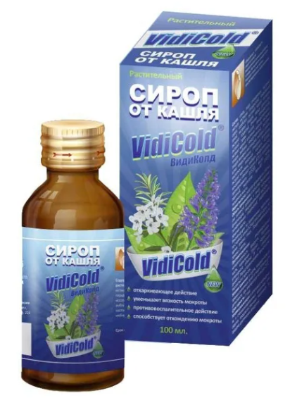 Сироп ВидиКолд (VidiCold) обладает признаками клинической эффективности: Облегчает симптомы кашля. Обладает противовоспалительным и отхаркивающим действием на дыхательные пути при кашле. Способствует уменьшению вязкости мокроты и лучшему её отхождению. Улучшает качество жизни при респираторных заболеваниях.