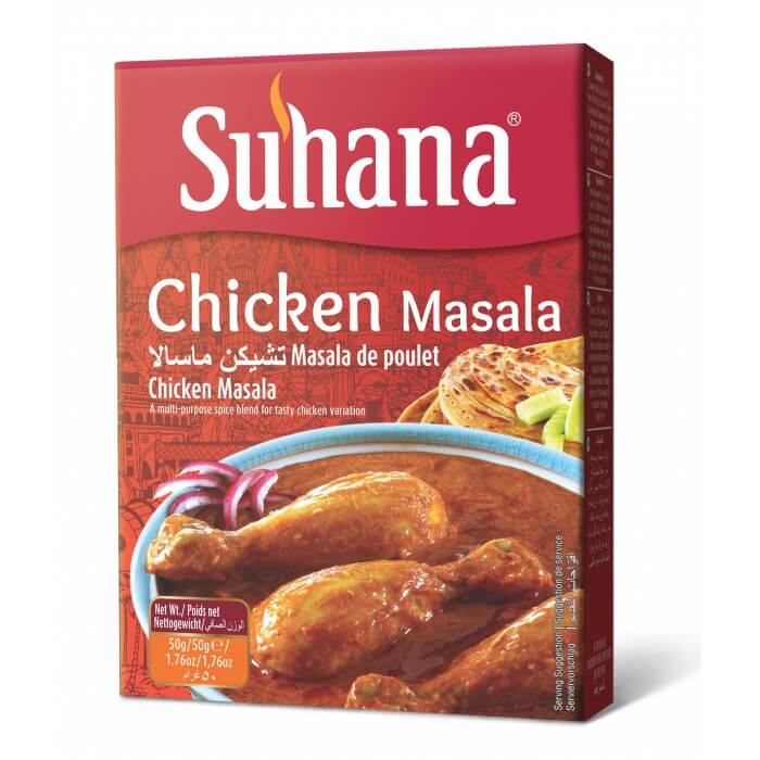 «Сухана Чикен Масала» — это ароматная смесь традиционных индийских специй, призванная подчеркнуть насыщенный, ароматный вкус домашнего куриного карри.