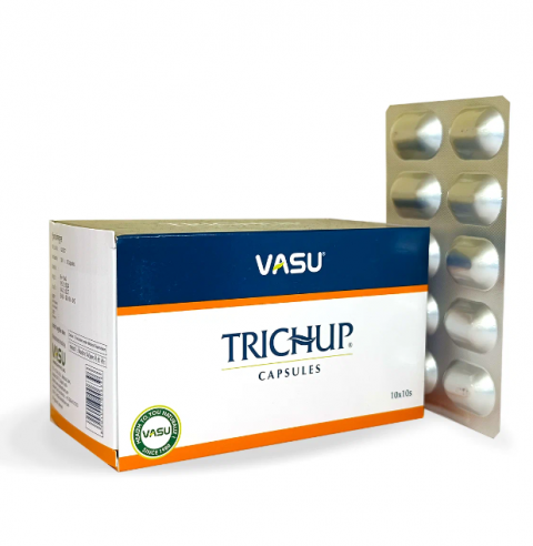 Состав капсул Тричуп: каждая капсула содержит: Брингарадж (Eclipta alba) - 210 мг, Готу кола (Centella asiatica) - 50 мг, Расаян Чурна (Rasayan Churn) - 45 мг, Яштимадху (Glycyrrhiza glabra) - 20 мг, Гибискус (Hibiscus rosa-sinersis) - 7.5 мг; Порошки: Саптамрит Лаух (Saptamrit Lauh) - 40 мг, Нарсинх чурна (Narsinh Churn) - 40mg, Гандака (Sulphurium) - 25 мг, Мукташукти бхасма (Oyster) - 25 мг.